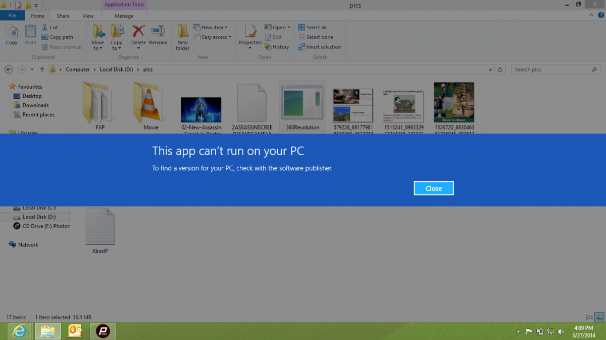 Hello I have just downloaded 360 Revolution. When I choose to install it says that "this app cannot run on your pc"