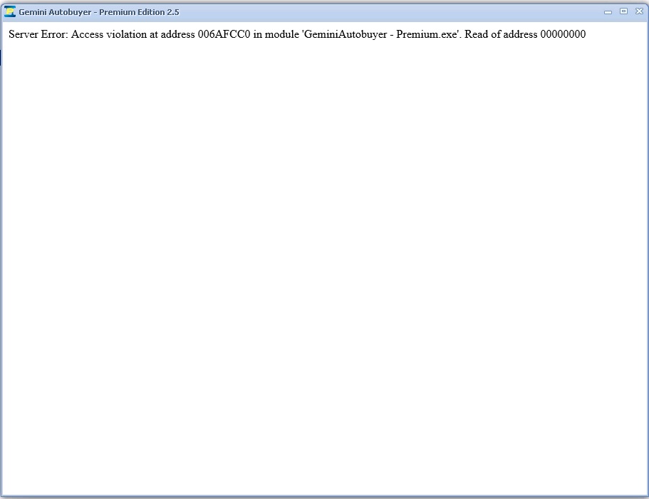 I have many bugs with the latest premium version... you can look my attachements... 1) script errors 2) access violation at address. (2 pics) 3) the AB is disconnect every minutes.i can't use the AB if is it disconnect all the time... thank you for help me or fix this please... Ty