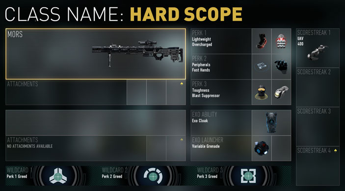 Sledgehammer Games has added a new playlist to Call Of Duty: Advanced Warfare called 'One Shot' which will feature double XP from now until the 29th of December. As the title might suggest, he new One Shot mode is a sniper-only playlist, which features five preset classes. Each class features MORS sniper rifle with no secondary weapons, as well as decreased health. Each of the five classes were designed by Sledgehammer Games along with OpTic NaDeSHoT, to test the true sniper skill of Advanced Warfare in this new custom mode, according to the official Sledegehammer Blog. The MORS sniper rifle is a bolt-action railgun sniper, which will come with different perks, Scorestreaks, and Exo abilities in each class. Lets take a look at the five classes available for ONE SHOT: HARDSCOPE: Zoomed: 4X: ACE: IRONS: