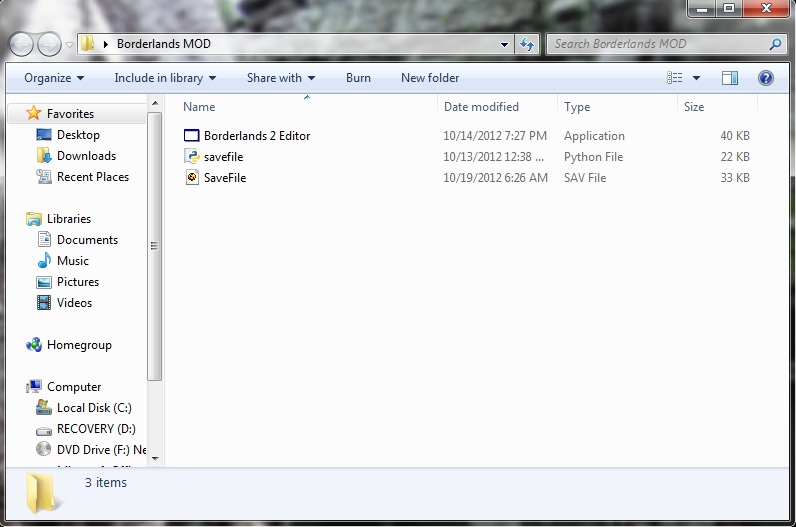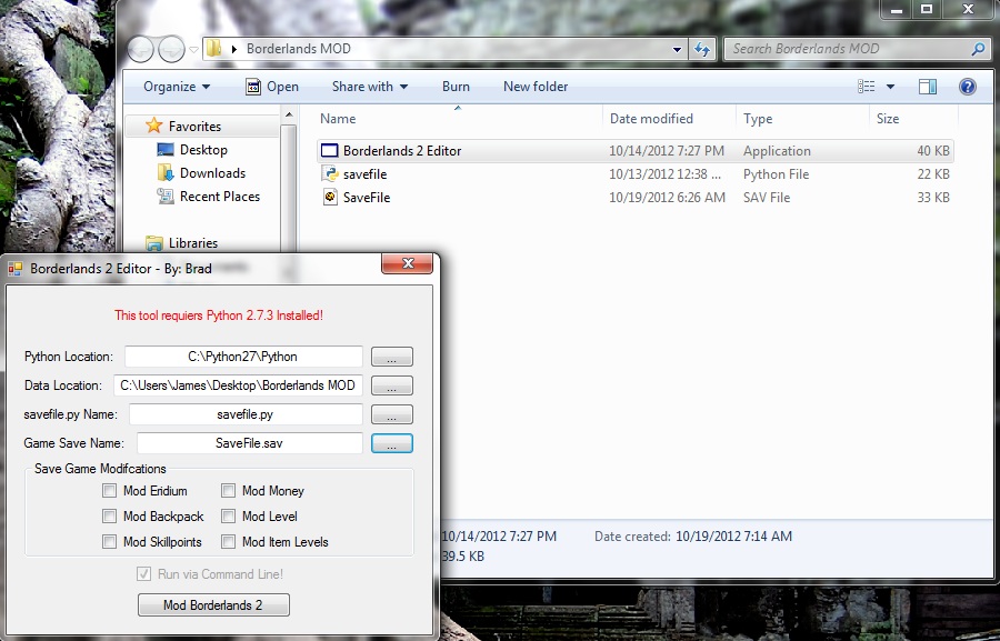 Is it absolutely pertinent that the zip file is in the same folder? In C drive I have a folder named borderlands 2 and in it are my .sav, the .exe for the tool, the Pthon file, as well as the zip file. When I open the mod program, in the data box it does not read \EXE like your posted photo. Is that a problem? I still have the new .sav file created so IDK what is going on.