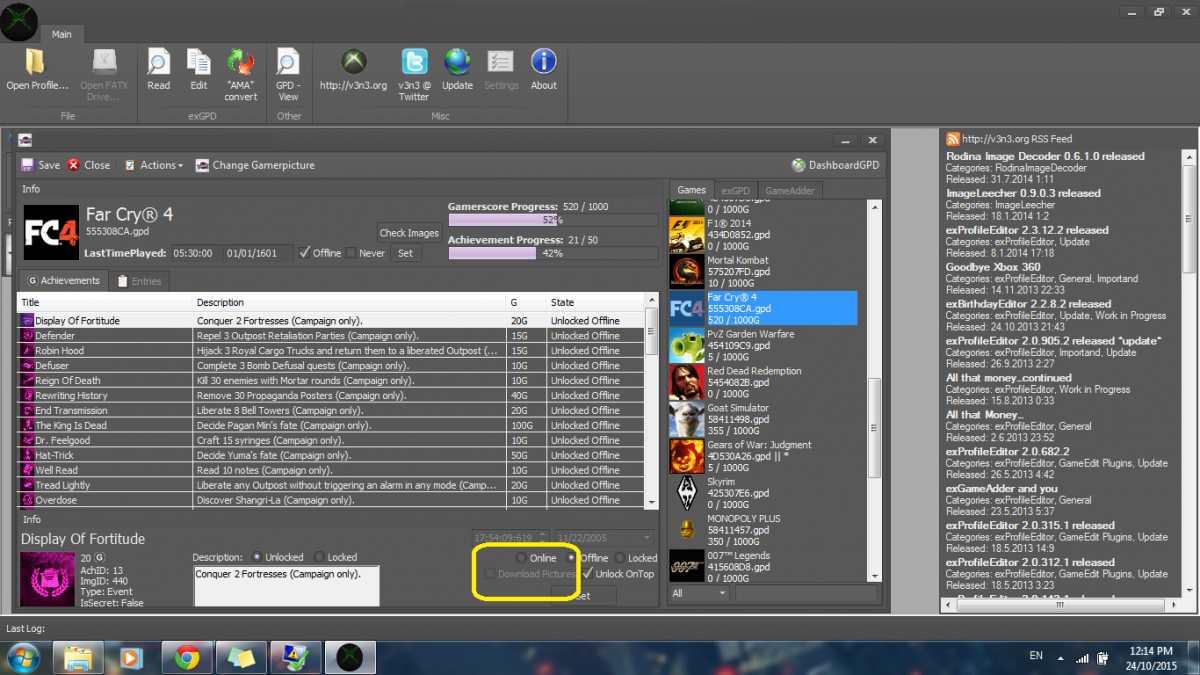 When I open a profile in Ex Profile Editor (latest edition), I can't download the icons for achievements because the "Download Pictures" radio button is greyed out. So is there any way to check that radio button? (refer to the attachment below)