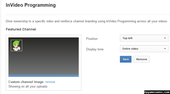 For those of you that would like to show know , i will show you how to add a branding to your Youtube videos. I will also include XPGs very own mascot for you too add to your videos should you wish to do so. The following tutorial will allow you to add a watermark image that is permanently displayed in one of the corners of your video. Of course you can use any video editing software to add logos or watermarks to your videos before uploading them to YouTube but this is to show you how do you put them in your existing videos that are already on Youtube, allowing you to change your watermarks with ease. YouTube new feature called InVideo Programming that will help you add any custom image to all your Youtube videos with a few clicks without having to edit the your vids. So go HERE , upload your watermark image heres ours. You can download ours here The only downside to this is that if a YouTube viewer has turned off annotations, your logo won’t be visible. Heres an example of it in action: http://www.youtube.com/watch?v=mA3AIus3Il4