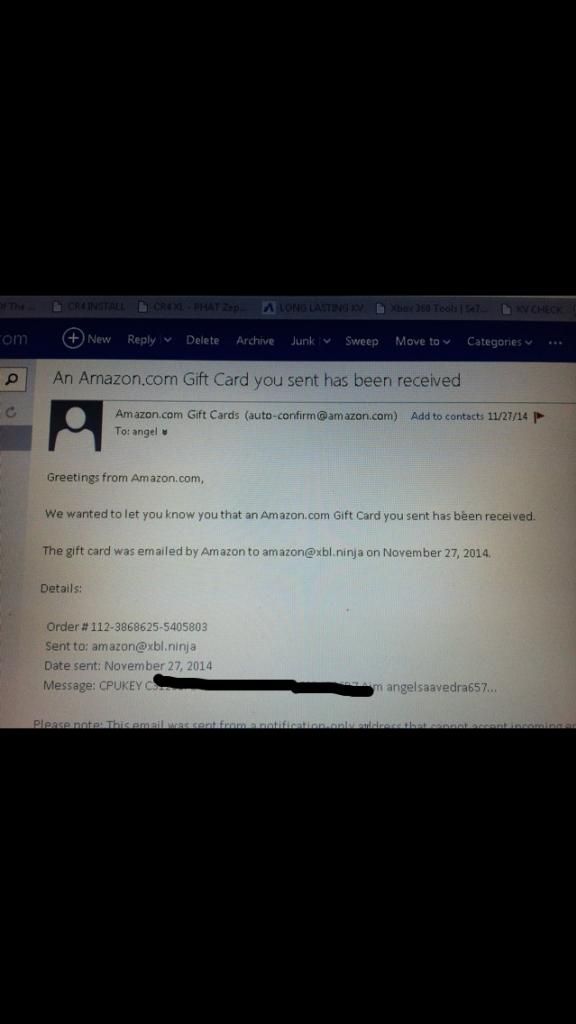 I sent them all details (cpu key aim skype) along with payment sent as a gift its been a day and a half still no reply from any of the members I've contacted on aim. Anybody else recently buy from them ? They've already redeemed my giftcard. obviously lol. http://i1225.photobucket.com/albums/ee397/angelsaavedra81/IMG_7523.jpg http://i1225.photobucket.com/albums/ee397/angelsaavedra81/IMG_7522.jpg http://i1225.photobucket.com/albums/ee397/angelsaavedra81/IMG_7525.jpg