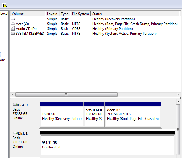 Click start> right click computer> click manage> expand storage in the left column> click disk management Does it show there?