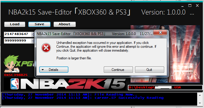 Hey Byto, i keep getting an error when i try and save the file. Error says "Position is Larger than File".