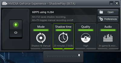 The Version 1.8 of the NVIDIA GeForce Experience service brings significant improvements mainly to Shadowplay. Now Windows 7 users can store files larger than 3.8 GB, it was previously limited unlike Windows 8. They have also included the ability to save different audio inputs, in order to separate the game audio and microphone, which is an interesting detail for recording gameplays and who already use other programs like Dxtory. Also added more settings when automatically run the games. For more information go here.