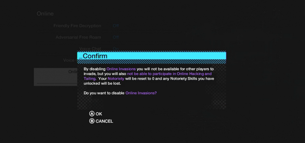 The world of Watch Dogs has been likened to Grand Theft Auto mainly because they are both open world action adventure games, the thing that separates the two games is that the main character of Ubisofts upcoming game is a hacker vigilante that has the ability to hack into the network, traffic lights, vehicles and even other players! But being that players are able to hack each other also has a downside according to images we found over at Spawnfirst today. It would seem as though Ubisoft will be dishing out resets on your Notoriety and also your notoriety skills if you disconnect from your online connection. Click image to enlarge: Image courtesy of SpawnFirst As you can see from the image it clearly states " By disabling Online Invasions you will not be available for other players to invade, but you will also not be able to participate in Online Hacking and Tailing. Your Notoriety will be reset to 0 and any Notoriety Skills you have unlocked will be lost. Do you want to disable Online Invasions?" When Microsoft announced that the Xbox One would need an always online connection it was met with uproar from the gaming community , and yet we are seeing more and more games insist that you stay connected to the internet during gameplay. So what does this mean for you, has it changed your opinion of the game or do you feel its fair that you have to remain online or get reset to zero? Let us know your thoughts below. This post has been promoted to an article
