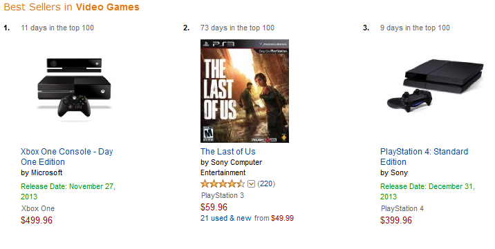 It seems to me that the Xbox One will now win the 8th generation console war. According to new stats from Amazon US, the Xbox One is the #1 best seller in the top 100 best sellers of this year while PS4 Standard Edition is at #3 and PS4 Launch Edition is at #15. It also seems that the Xbox One was in the best sellers list before the PS4 was. Give me your thoughts on this amazing comeback by Microsoft after changing their policies.