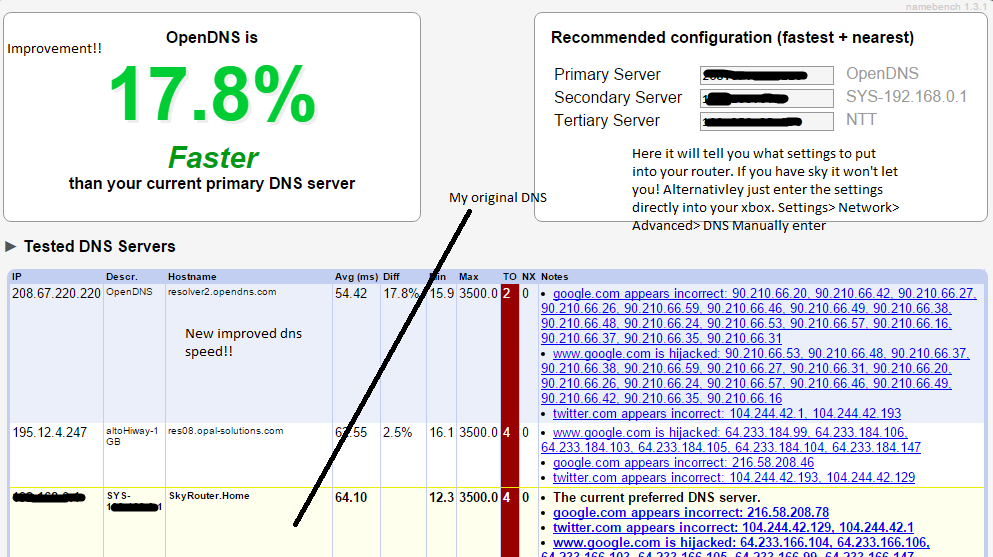 Hi everyone! So I am sure all of us xbox users are aware of how horribly slow downloading is on this console, it is TERRIBLE. Well some of you may know and some of you may not know of a programme called 'namebench.' Essentially it will run tests on your laptop/desktop to see if you are getting the best DNS available. I for example had a pretty crap DNS assigned to me by ISP. So I downloaded namebench and it turns out there was some DNS settings that were better suited for me - see in the attached picture! Anyway the last twenty minutes my xbox has download 5GB. In the previous two hours it had downloaded only 3.27 GB! So it is defiantly worth doing to at least see if you can get faster speeds! Below is the link to were you can download namebench, if it does not work simply type in namebench in google! https://code.google.com/p/namebench/downloads/list
