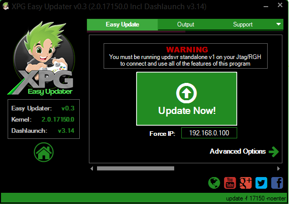 ===================================================================== XPG Easy Updater v0.4(2.0.17349.0 Incl Dashlaunch v3.13) ===================================================================== This is not a standalone GUI, it uses xebuild to patch and update your console. All the options available in this GUI can be done via command line, this was made to be very user friendly and easy to understand. Dashlaunch had to be downgraded to v3.13 as the newer 3.14 would not work at all. This will be updated as soon as a new version is available. (Pictures from last version, is exactly the same but updated) UnHidden Content: download Virus Scan: https://www.virustotal.com/en/file/01513f28d9629faa4470797ff5c1174207ee7f3ae7e1b0d92413899474e4baa5/analysis/1430445316/ Thanks to the xeBuild team for giving us this great easy way to update your console and for updserv, JPizzle @ RMS for the original tutorial and begallegal for the XPG tutorial and original .bat idea Huge thanks also to the Dashlaunch team. You must be running updsvr_standalone_v1 on your console for this GUI and xebuild to connect and perform maintenance on your console. Setting up updsvr ===================== 1. Extract the updsvr_standalone_v1.zip to a folder and transfer the default.xex to the root of a usb drive. 2. Plug the usb drive into your console and power it up. You should now see updsvr on your console. If you are experiencing connectivity issues with updsvr standalone v1 please try running the built in updserv from within Dashlaunch or at last option try updsvr standalone v3. Easy Update =============== 1. Open the XPGUpdater.exe and click the Update Now! button. Yes it is really that simple to update your console. Once the console powers down after flashing remove the usb drive and it will now load into your dashboard set within your launch.ini If you have any issues connecting to your console try using the Force IP option. Advanced options ===================== Spoiler To perform these advanced options you will also need updsvr_standalone_v1 running on your console, simply switch to the advanced options tab and choose your settings. ------------- Options ------------- Check the appropriate options for your build and then navigate back to the Easy Updater page and click the Update Now! button. nofcrt - removes fcrt.bin requirement on some drives nohdd - disables detection of internal SATA HDD nohdmiwait - HDMI consoles will no longer wait or EXX screen when video is not ready nolan - disables wired LAN to prevent E75/76/77 on machines with a damaged PHY nointmu - disables jasper NANDmu, trinity 4G internal USB and corona 4G MMC memory units There is a Refresh button in the radial menu to clear all options and output window etc, simply click the home button. ------------------------ Custom Update ------------------------ This is used if you would like to flash a different kernel to your console. Simply extract the $SystemUpdate.zip (for the specific kernel) into the matching folder, You should now have a $systemUpdate folder and a bin folder in there. Enter the kernel version (eg. 16767) into the "Custom" text box and tick the "Custom" checkbox above it. (This Must be done in this order for it to be successful.) Navigate back to the Easy Update tab and click "Update Now!". You should now be on your custom kernel instead of the inbuilt 17349 kernal. -------------------------------- Flashing Avatar data -------------------------------- Simply navigate to the advanced options tab again and click the Flash Avatar Data! button, this will ignore any other options selected and flash the 17349 avatar data directly to your console. ------------------------------------------ Flashing Compatibility data ------------------------------------------Navigate to the advanced options tab and click the Flash Xbox Compatibility button, this will ignore all other options selected and flash the xbox compatibility data directly to your console. ------------------------------ Update HV Patches ------------------------------ This option is specifically for updating from older kernels where the HV patches are to old to use the update feature from within xeBuild. More specifically if you get this error "*****ERROR: console hv patches are not recent enough to support update mode! update console patches and reboot before trying again." Navigate back to the advanced options tab and click the "Update HV Patches" button, after updating the patches you should now be able to use the app to update your console. ------------------------------------- Backup your nand to PC ------------------------------------- Click the "Backup Nand to PC" button from the advanced settings tab and it will backup a copy directly to the XPG Easy Updater folder. ----------------------------------- Write Nand to Console ----------------------------------- Place your updated nand into the XPG Easy Updater folder and rename it to nandflash.bin, click "Write Nand to Console" button to flash your image over ethernet or wifi. ------------------------------------ Reboot and Shut down ------------------------------------ Exactly as it states, click one of these to either reboot or shut down your console directly from your PC. ---------------------- Included Files ---------------------- - xeBuild 1.12- Dashlaunch v3.13 - Dashlaunch v3.14 - updsvr_standalone_v1 - 2.0.17349.0 System update files and patches ------------------------------------- www.xpgamesaves.com ------------------------------------- Any questions please ask in this topic. GUI was built and coded by GoldZ & FeralA9X. GFX by FeralA9X. Tested by FeralA9X. Enjoy! Changelog: Spoiler v0.4 - updated app from 2.0.17150.0 to 2.0.17349.0 - added 17349 patches - changed dash launch version to 3.13 v0.3 r2 - added option to flash xbox compatibility data - added all patches from official kernel releases 7371, 9199, 12611, 12625, 13146, 13599, 13604, 14699, 14717, 14719, 15574, 16197, 16202, 16203, 16537, 16547, 16747, 16756, 16