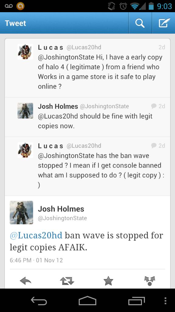 Everyone, DO NOT PLAY HALO 4 online! You will be banned! I literally just got off the phone with MS XBL Customer Service and was told to not play the game until the 6th. If you want to try it, it's up to you, but is it worth a $200 to $300 console?